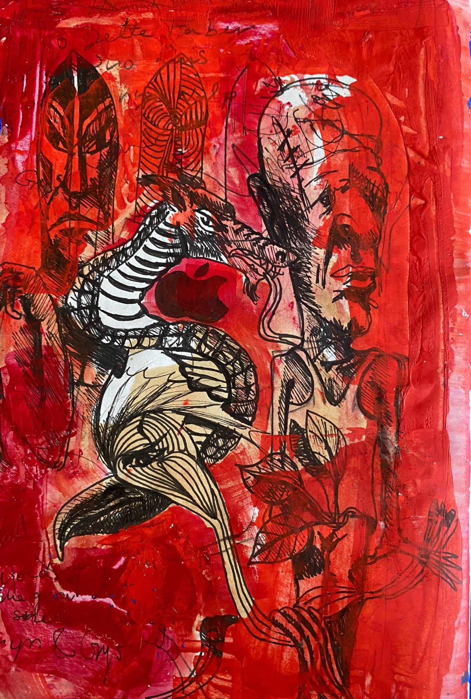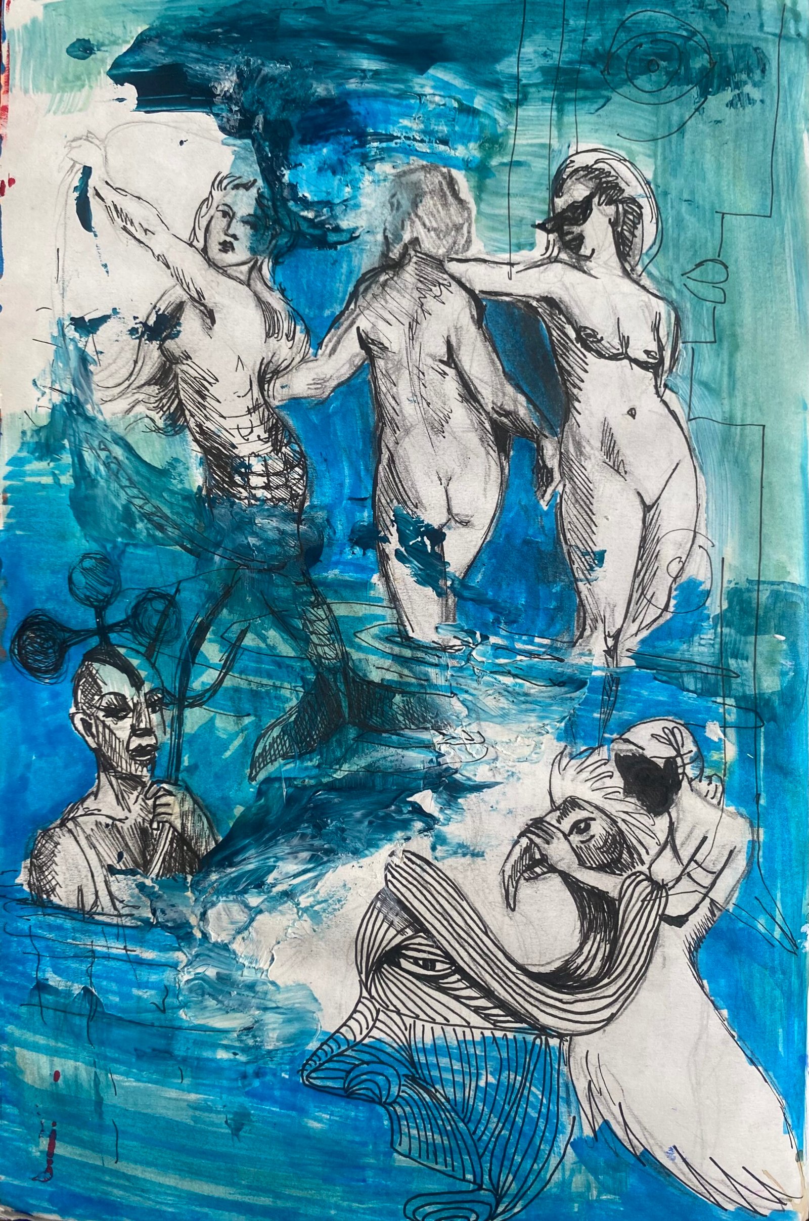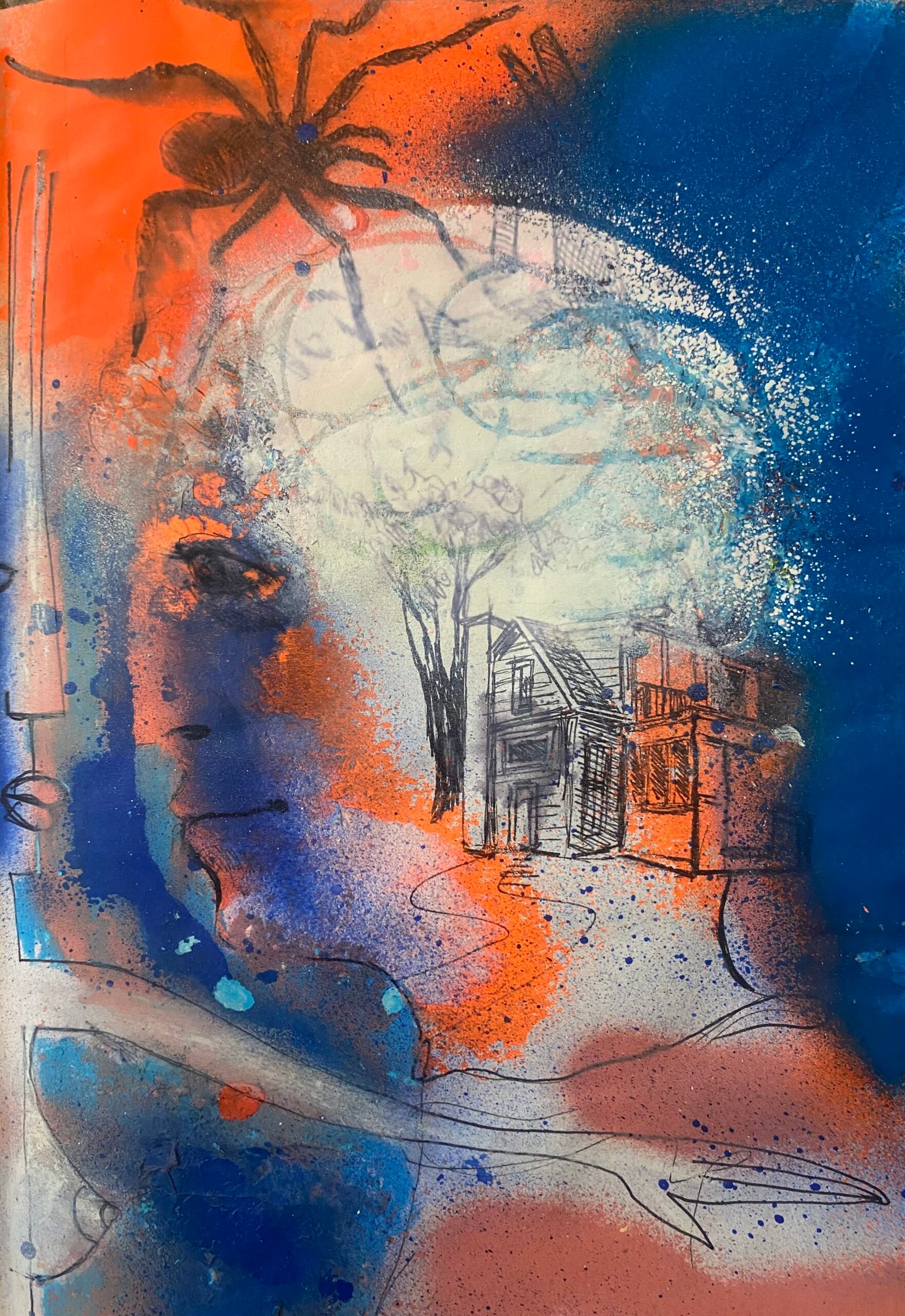 Deze reeks van vijftien tekeningen vormt een intuïtief en gelaagd onderzoek naar hoe innerlijke werelden zich nestelen in het lichaam. Elk werk bevat sporen van herinnering, aanraking en verbeelding – tastbare resten van het onzegbare. Met mixed media – gewassen inkt, schilders tape, grafiet en soms aquarel – zijn de beelden opgebouwd uit fragmenten. Ze roepen vragen op, schuiven betekenissen in elkaar en laten ruimte voor interpretatie. De teksten nodigen uit tot kijken, dwalen en blijven.